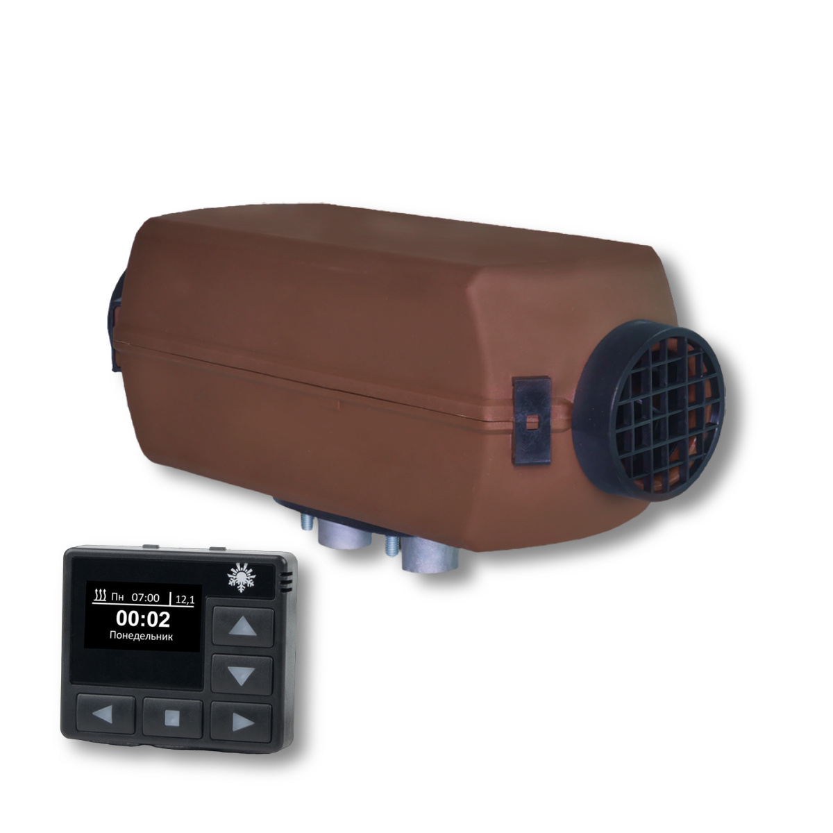 Отопитель воздушный дизельный Спутник 2Д-24В (2 киловатта) Монтажный комплект, ЭЛЕКТРОННЫЙ ПУЛЬТ ТАЙМЕР